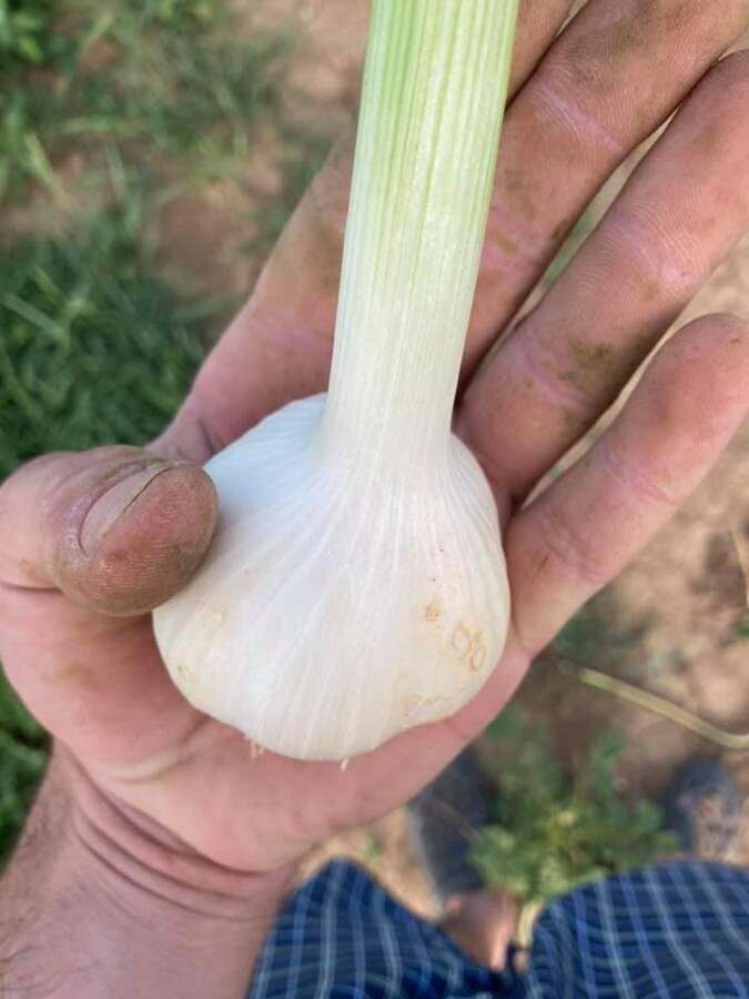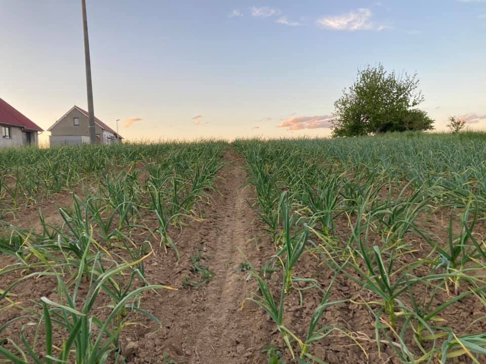 Česnek je stěžejní plodinou naší farmy. Pěstujeme výhradně odrůdu Rusák. Jedná se o krajovou odrůdu z bývalého SSSR. Tato odrůda ozimého velkostroužkového paličáku se vyznačuje bílou barvou s nádechem žilkování. Tvoří velké cibule s 5-8 velkými stroužky. Ruský paličák má nezaměnitelnou velmi ostrou chuť. Jeho dlouhodobá skladovatelnost je vynikající.